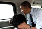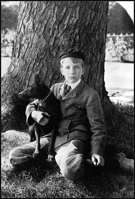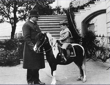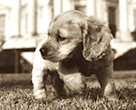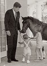 The Kennedy family poses with their dogs at Hyannisport: Irish spaniel Shannon, Welsh terrier Charlie, German shepherd Clipper, and the pups of Pushinka, who was a gift to Caroline from Soviet premier Nikita Khrushchev.