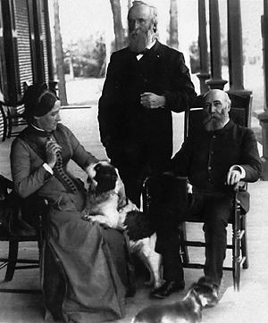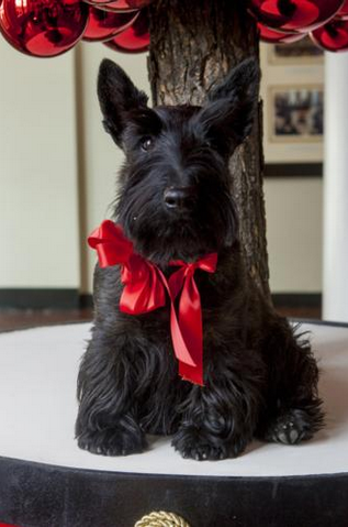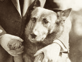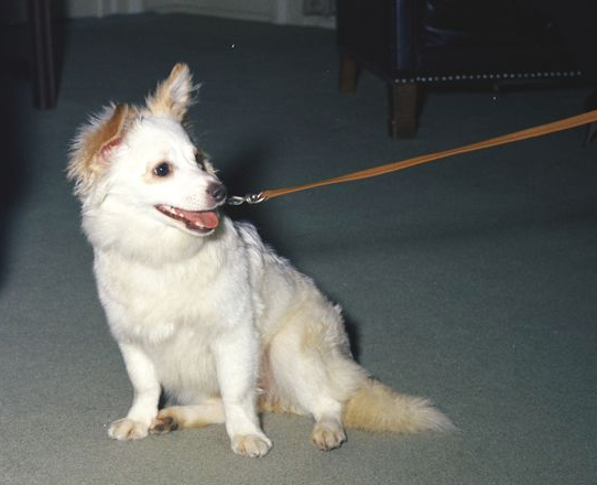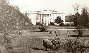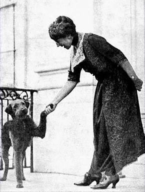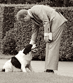 Mamie Eisenhower, right, tires to restrain Heidi as the dog jumps up on the director of the Tailwaggers Club of Washington, center. At left is Charles Hamilton of the Animal Rescue League. May 1958 photo by AP wire service.